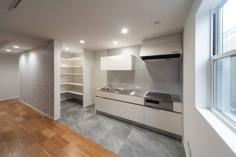 オープン棚ですっきり収納できる家
