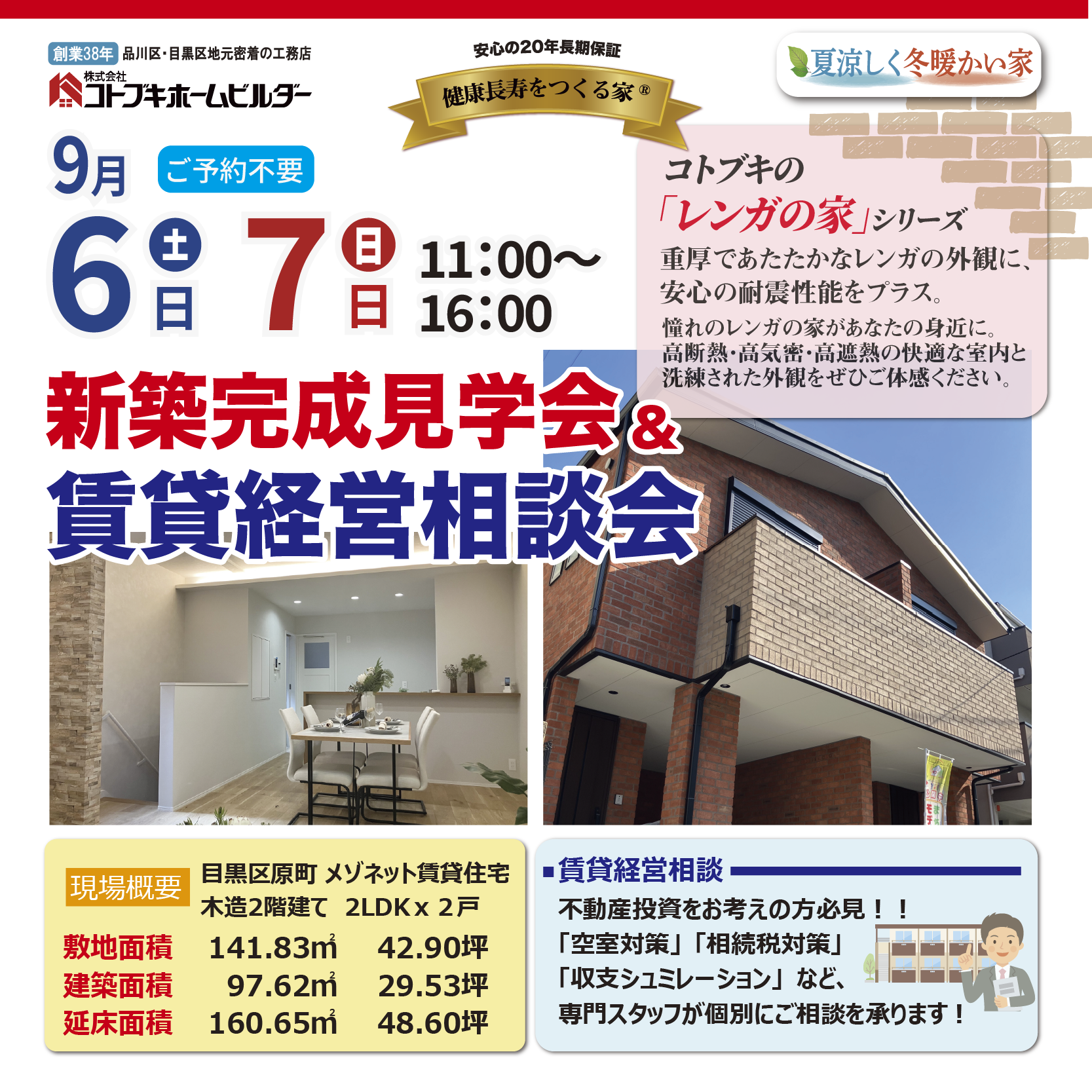 9月6日・7日 レンガの家シリーズ新築完成現場見学会&賃貸経営相談会開催!