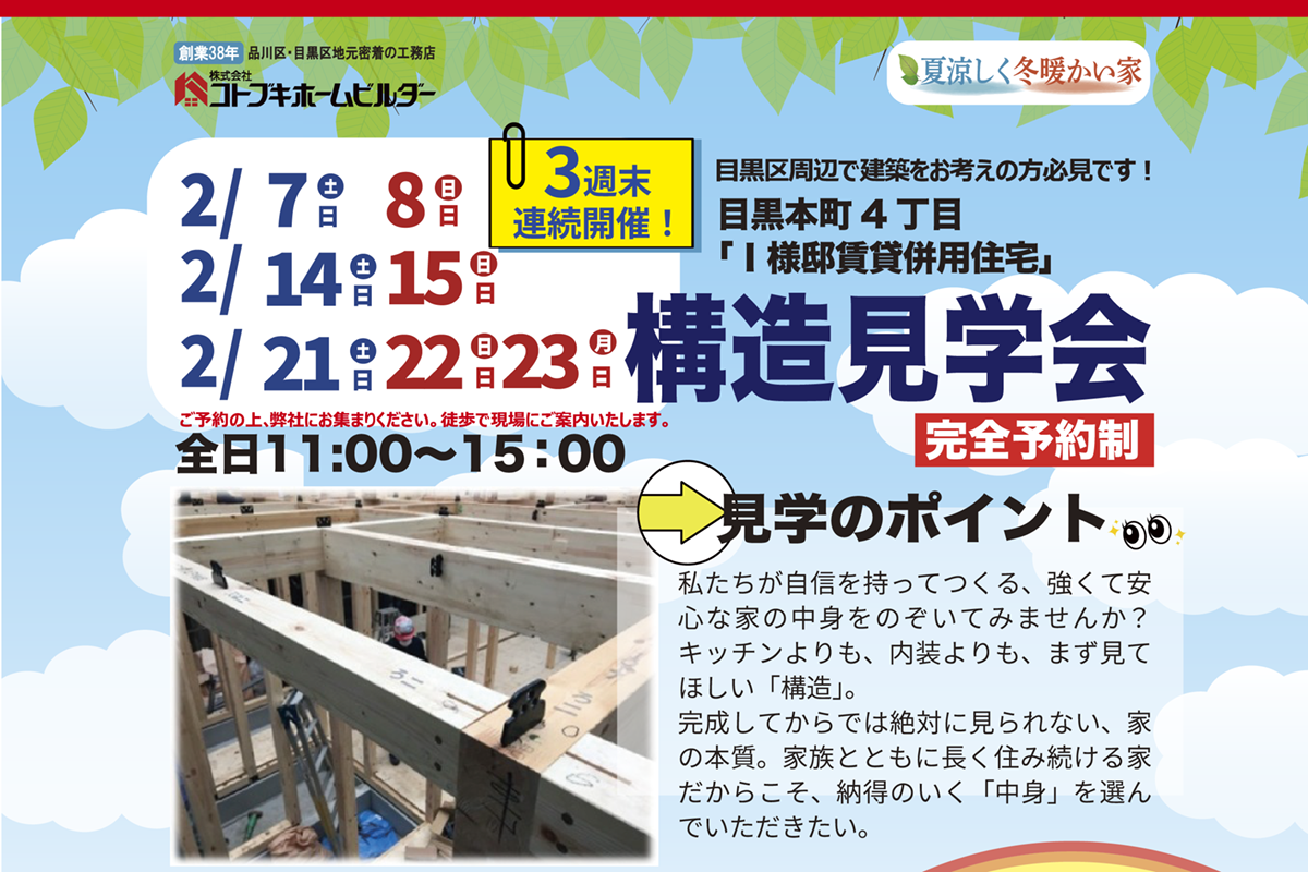 3連休がラストチャンス!構造見学会開催中(目黒区)